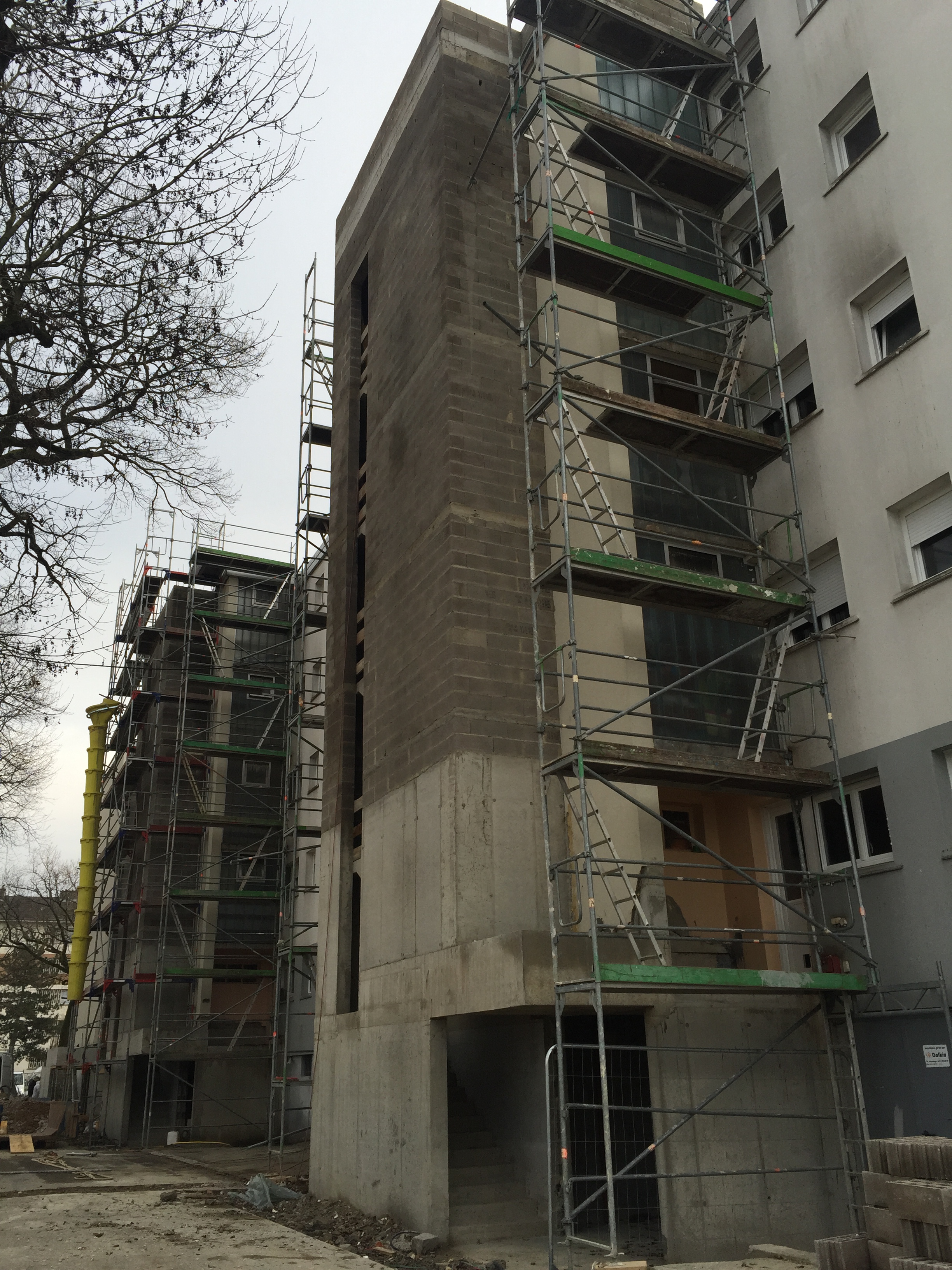 Les murs en béton armé présentent des avantages de résistance mécanique, de degré coupe-feu et acoustique plus élevé que la maçonnerie. Ils permettent toutes les formes et toutes les hauteurs.